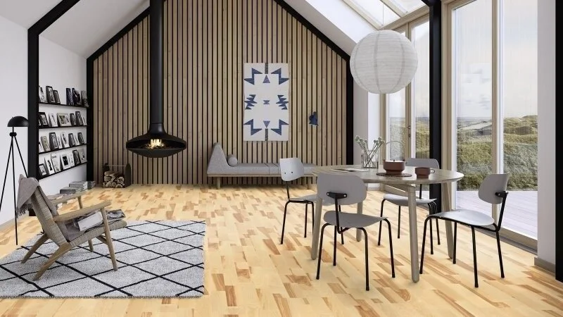 Lattiatyyppi: parkettilattia, saarni, 3-lankkuinen