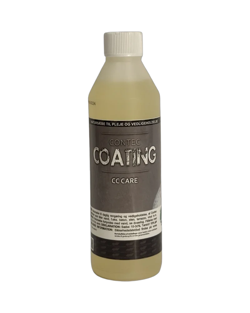 Med CC Care Natursæbe kan du bringe naturens kraft ind i dit hjem eller arbejdsplads. Denne sæbe, der stolt bærer Svanemærket, er omhyggeligt fremstillet med tanke på miljøet og effektivitet. Dens naturlige sammensætning er perfekt til effektiv rengøring og pleje af dine overflader, og den er særligt egnet til materialer som terrazzo, sten, og vinyl, der tåler vand. Når du anvender CC Care, lægger den en usynlig, beskyttende film, der ikke alene bevarer overfladens skønhed, men aktivt forlænger dens levetid og modstandskraft mod hverdagens slid. CC Care er din sikkerhed for en ren og skinnende overflade hver gang, helt uden brug af skrappe kemikalier. Gør renlighed til en bæredygtig del af din dagligdag med et valg, der beskytter både miljøet og dine overflader.