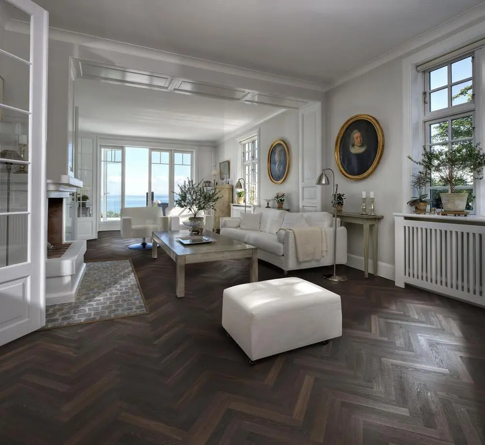 2-kerroksinen kalanruotoparketti. Studio Collection on kaksikerroksinen lattia, eli siinä ei ole viilutaustaa. Tuote on asennettava liimaamalla alapohjaa vasten sopivalla ja tarkoitukseen soveltuvalla liimalla, ja asennuksen tulisi suorittaa kokeneet ammattilaiset. Tuote toimitetaan pakkauksissa, jotka sisältävät sekä vasemman että oikean laudan.