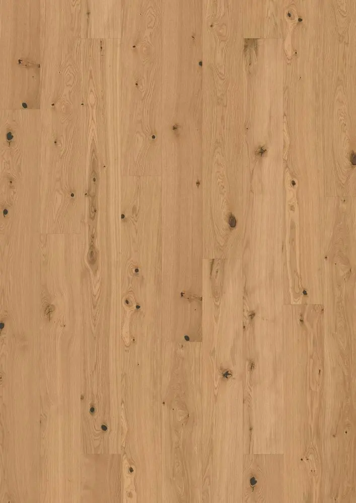 Tammi Cardamom -lauta, on hieman rustiikkisempi muotoilu, jossa on solmuja ja karkeampaa puunsyytä, mikä korostaa sen autenttista luonnetta. Lattia tuo esiin tammipuun luonnollisen kauneuden, lisäten jokaiseen tilaan rouhean, orgaanisen viehätyksen samalla kun se säilyttää lämpimän ja kutsuvan tunnelman. Ajan myötä sävy muuttuu enemmän keltaruskeaksi.