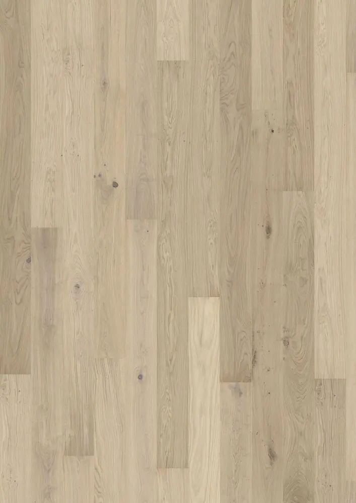 Tammi Horizon, Tämä yksilaudainen tammilattia Lux-kokoelmasta on häivytetyllä, valkoisella ja läpikuultavalla sävytyksellä, joka päästää puun tunnusomaiset sävyvaihtelut esiin. Laidan neljäsivuinen mikroviiste antaa klassisen kokolankkuvaikutelman. Jokainen lankku on huolellisesti harjattu, mikä korostaa syykuvion luonnollista luonnetta. Erittäin matta lakka korostaa puun luonnollisia vaihteluita ja saa lattian näyttämään vastasahatulta puulta. Se vähentää häikäisyä tehokkaasti ja suojaa lattiapintaa päivittäiseltä kulutukselta.