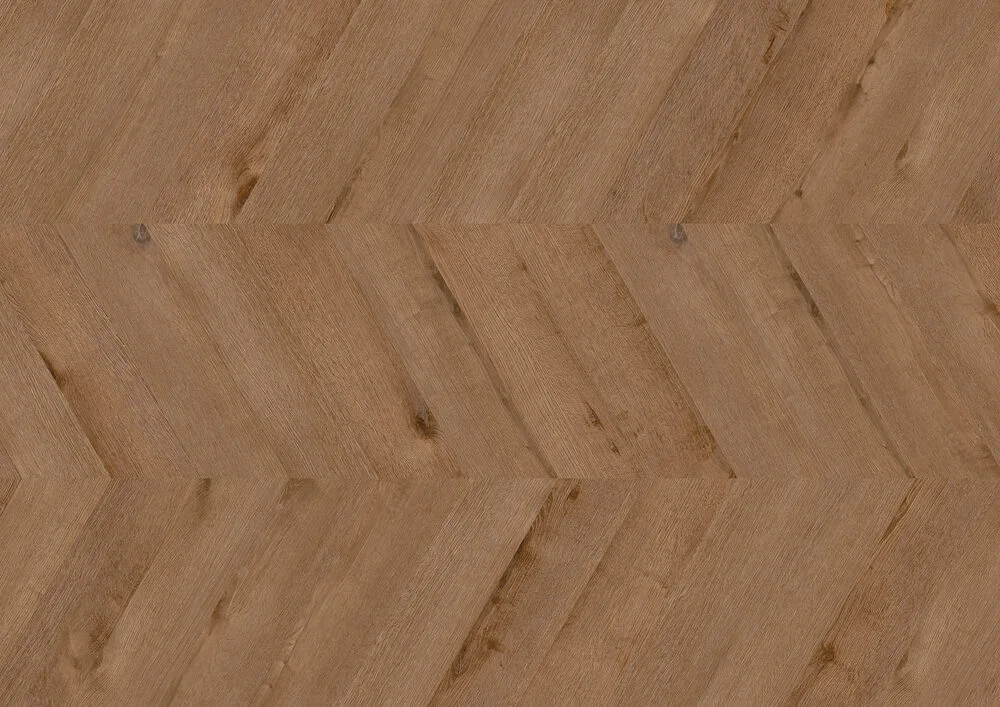 Chevron Edition Pro. Chevron-asettelu – tunnetaan myös nimellä ranskalainen kalanruoto – on tunnusomaista tarkasti leikatuilla laudoilla, joiden päät on leikattu 60° kulmaan ja jotka kohtaavat kärjestä kärkeen. Se luo täydellisiä, harmonisia liittymäkohtia, jotka muodostavat selkeän ja tasaisen V-muodon lattian yli. Verrattuna klassiseen kalanruotomalliin, jossa yhden laudan lyhyt pää kohtaa toisen laudan sivun 45° kulmassa, Chevron näyttää hillitymmältä ja rakenteellisemmalta ilmeeltään. Sen epätavallinen avoimuus ja graafinen tarkkuus tekevät siitä erityisen sopivan moderneihin ja ylellisiin sisustuksiin.