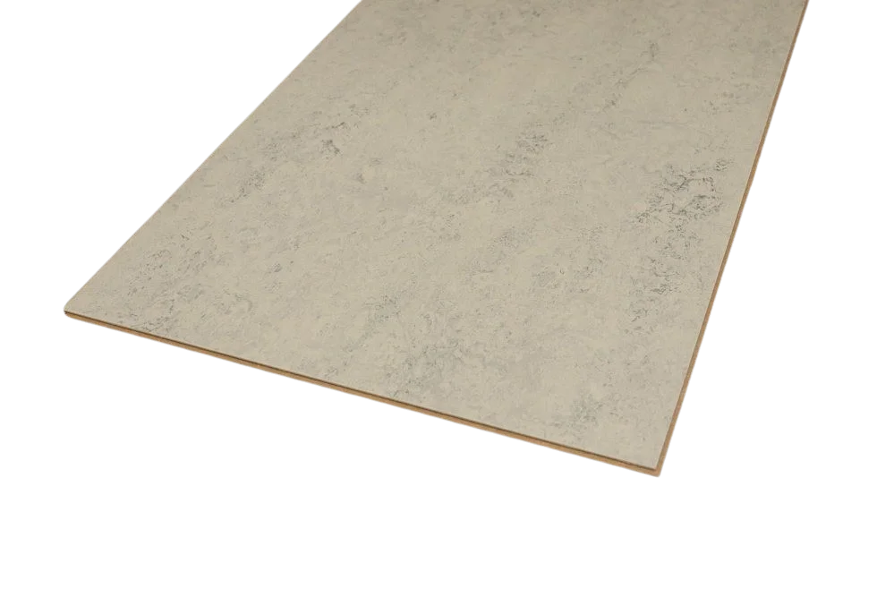 Linoleumilaatat koostuvat 2 mm korkkipohjasta, 6,8 mm HDF-välilevystä ja 1,2 mm kulutusta kestävästä linoleumipinnasta. Korkkipohjan ansiosta lattian alle ei tarvitse asentaa erillistä alusmateriaalia, vaan tarvitaan vain höyrynsulku siellä, missä se on tarpeen.